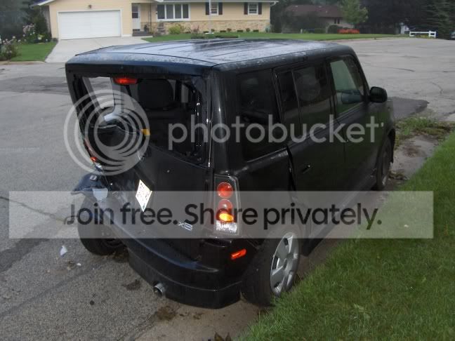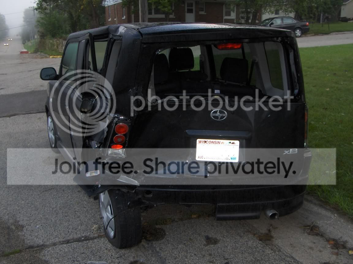 it depends on the insurnace company of the driver responsible to see if it gets totaled. plus the xb is a unibody not on a frame i think.. easier to fix... from the looks of it.. i would think a lot of money would go into labor and not parts... i would say 65 percent of the cost of the vehicle is in the engine.. i would get a lawyer ne wayz because you know that thier insurance will give you crap about getting the value of the car and what you owe on it.. unless you have gap insurance.. but because it is not your fault.. their ins should pay for all of it... if it was me.. i would just get a lawyer..
