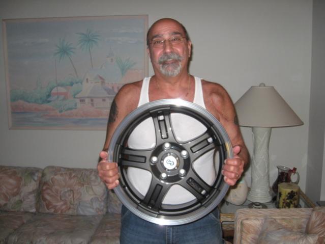 My son, who works for Toyota mounted my Enkei RZ-5 on Saturday. I think it looks pretty good. Now to lower it a bit and some blue head lamps and I am set. the Enkei's are a gun metal gray with a machined lip. It blends well with the silver paint job. Photos attached, and no, I am not holding the steering wheel.