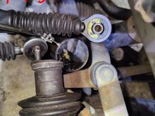 This is the shifter bell arm assy. At least, that's what I'm calling it. The pin sticking up, holds one of the 2 shift cables. That black square piece on the other pin, is new. I replaced it thinking that was my problem. More below.